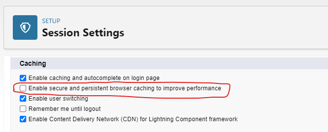 Caching 밑에 두번째 체크박스 'Enable secure and persistent browser caching to improve performance'